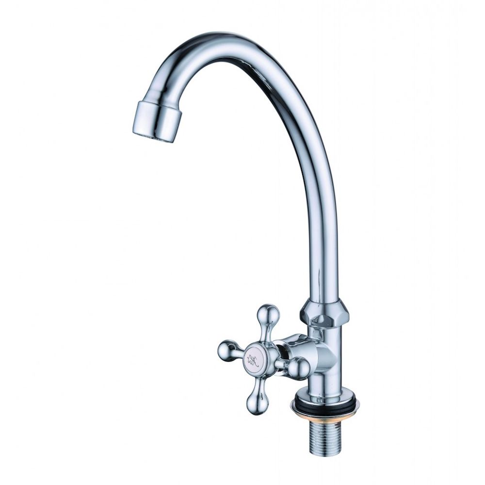 Кран на одну воду D-Lin D151911-1, хром. Управление: вентильное. Материал: металлический сплав. Монтаж: на мойку.