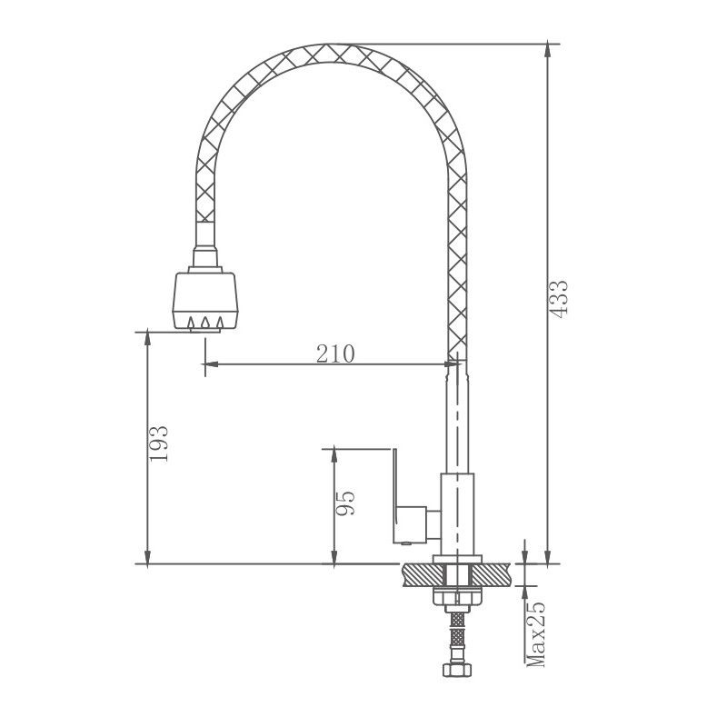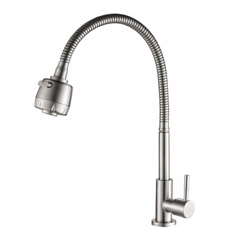 Кран на одну воду бренда Haiba. Изготовлен из нержавеющей стали. Картридж 35 мм. Укомплектован аэратором. Гибкая подводка 40 см. С поворотным изливом.