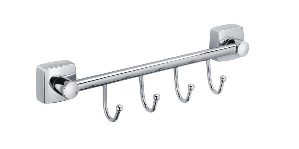 Металлические крючки для полотенец Fixsen Kvadro FX-61305B-4 с планкой на 4 крючка в лаконичном дизайне, которые подойдут к любому современному интерьеру ванной комнаты.