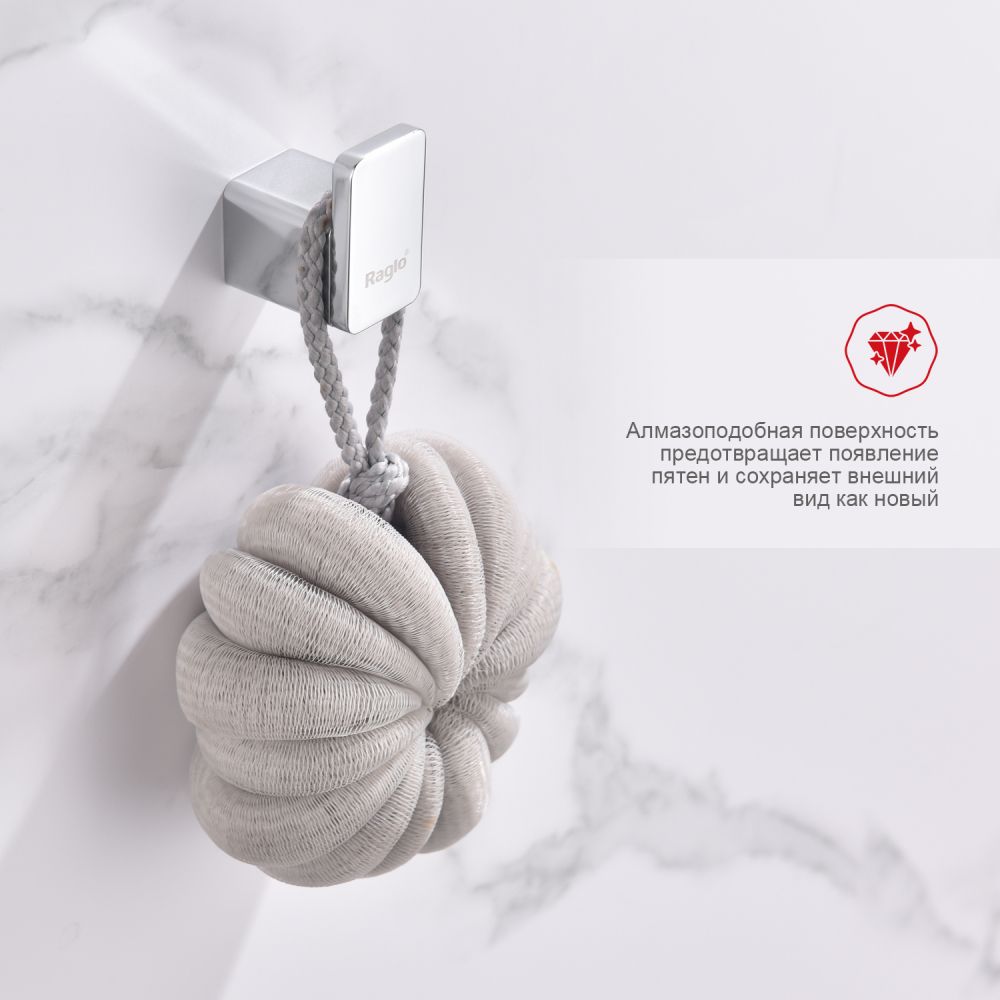 Raglo R301.05 Держатель полотенец в ванную, крючок. Изделие предназначено для хранения полотенец и банных халатов в ванной комнате. Форма квадратная. Крепление в комплекте.