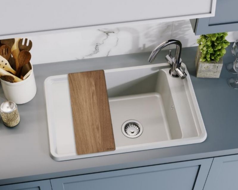 Кухонная мойка Акватон Беллис 78 1A725032BS240. В производстве кухонных моек используются только экологически чистые материалы. Внутренний слой состоит из природного молотого мрамора в сочетании с полиэфирными смолами. Поверхность покрыта высококачественным материалом Gelcoat, уникальным полимером повышенной прочности и химической стойкости.