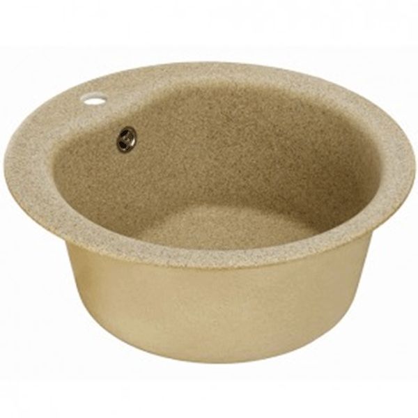 Имеет одну чашу и круглую форму, которая обеспечивает удобное использование. Мойка обладает оптимальным размером и глубиной, которая не дает разбрызгивать воду, изолирует шум и упрощает процесс уборки. Подойдет для компактных кухонь.