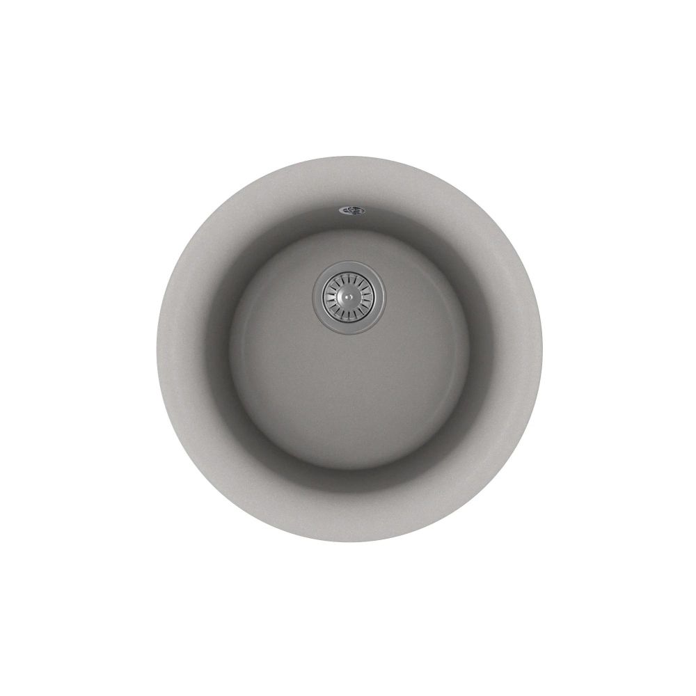 Круглая мойка с большой чашей для кухонного шкафа 45 см, напоминающая форму кувшина. Материал — кварцевый композит. Установка акcессуаров производится в столешницу.