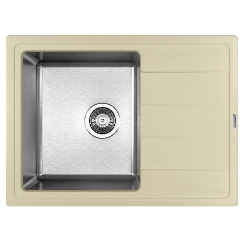 Мойка под шкаф 45 см. Материал столешницы мойки - кварцевый композит. Материал чаши мойки - нержавеющая сталь марки AISI 304, толщина 1 мм. В комплект входит отводная арматура с выпуском 3 ½ ” (D=90 мм) и переливом, набор крепежей, трафарет. Модель оборачиваемая.