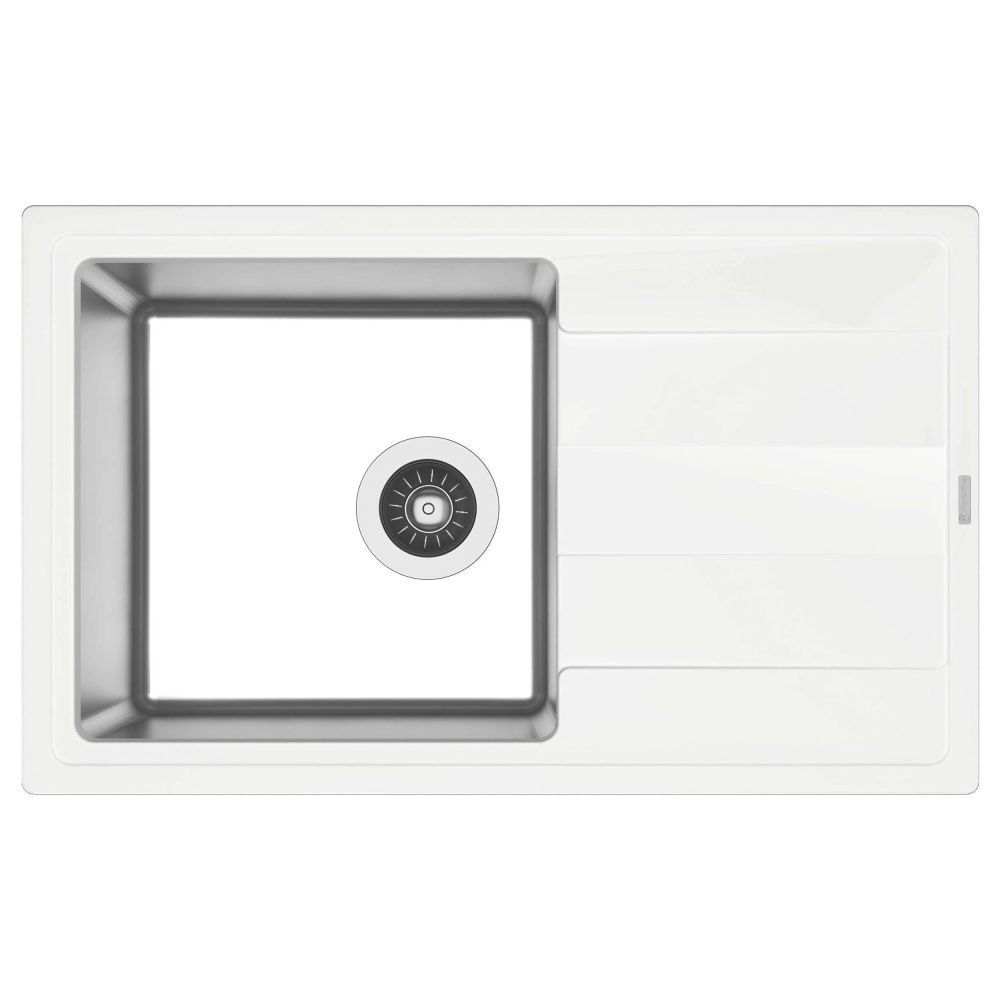 Мойка под шкаф 60 см. Материал столешницы мойки - кварцевый композит. Материал чаши мойки - нержавеющая сталь марки AISI 304, толщина 1 мм. В комплект входит отводная арматура с выпуском 3 ½ ” (D=90 мм) и переливом, набор крепежей, трафарет. Модель оборачиваемая.