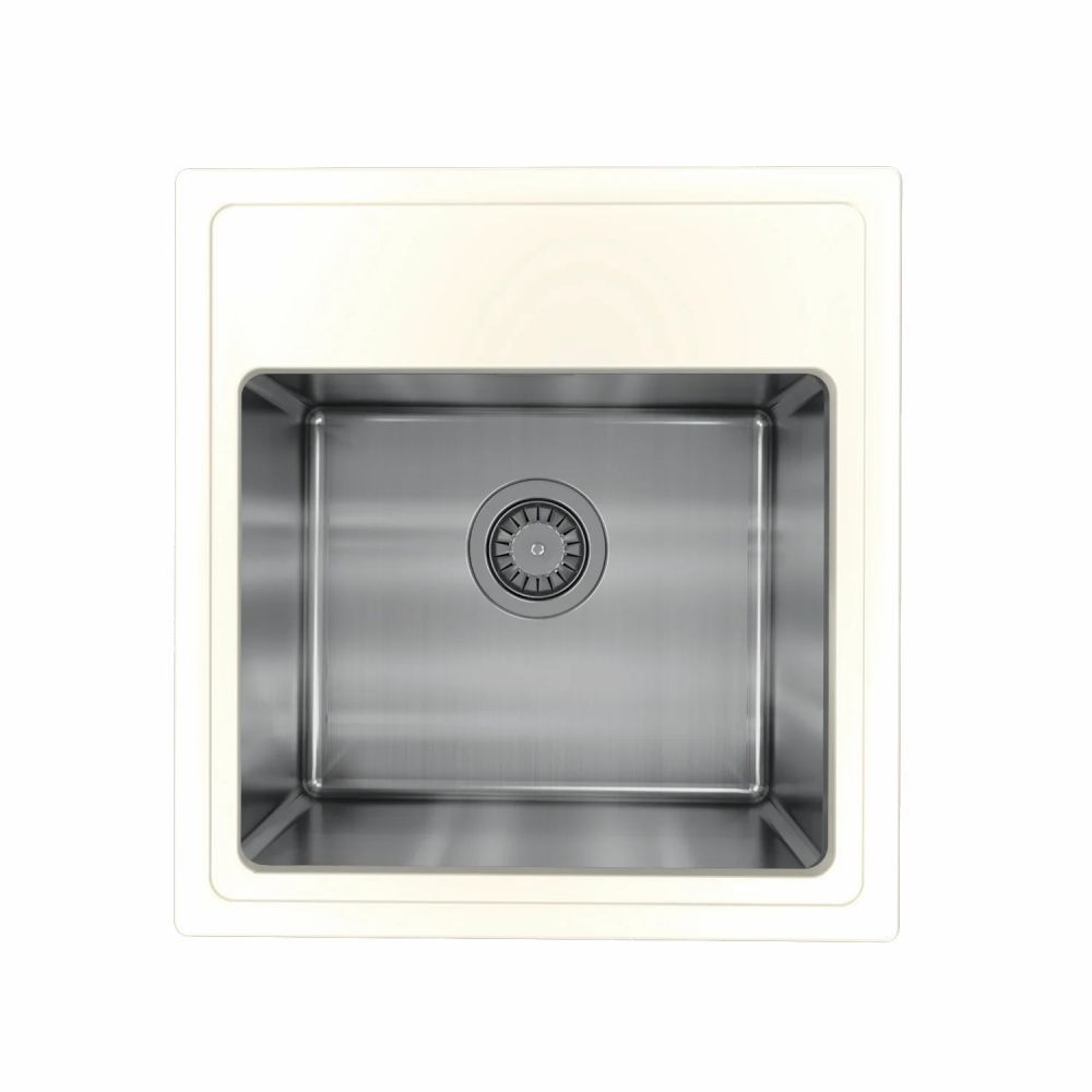 Мойка под шкаф 45 см. Материал столешницы мойки - кварцевый композит. Материал чаши мойки - нержавеющая сталь марки AISI 304, толщина 1 мм. В комплект входит отводная арматура с выпуском 3 ½ ” (D=90 мм) и переливом, набор крепежей, трафарет.