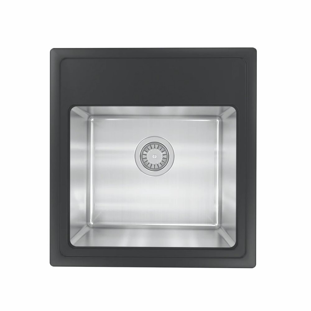 Мойка под шкаф 45 см. Материал столешницы мойки - кварцевый композит. Материал чаши мойки - нержавеющая сталь марки AISI 304, толщина 1 мм. В комплект входит отводная арматура с выпуском 3 ½ ” (D=90 мм) и переливом, набор крепежей, трафарет.