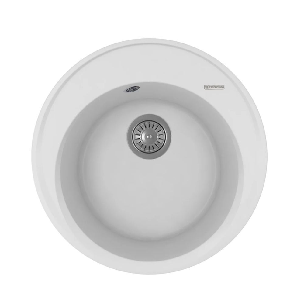 Круглая мойка с большой чашей для кухонного шкафа 45 см. Материал — кварцевый композит. Предусмотрены дополнительные отверстия для установки аксессуаров.
