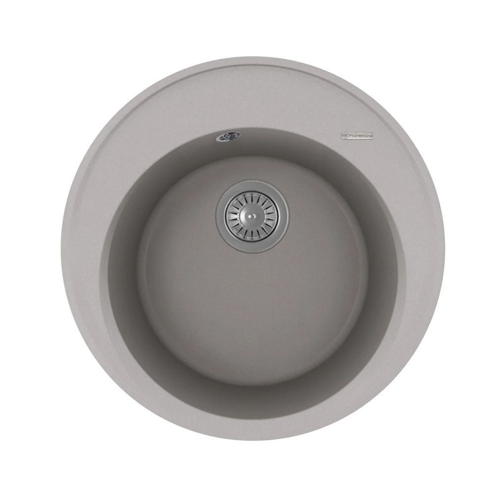 Круглая мойка с большой чашей для кухонного шкафа 45 см. Материал — кварцевый композит. Предусмотрены дополнительные отверстия для установки аксессуаров.