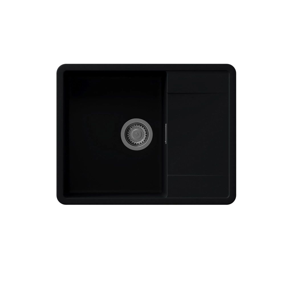 Прямоугольная мойка с большой чашей для кухонного шкафа 50 см. Материал — кварцевый композит. Предусмотрены доп. отверстия для установки аксессуаров. Мойка реверсивная.