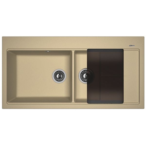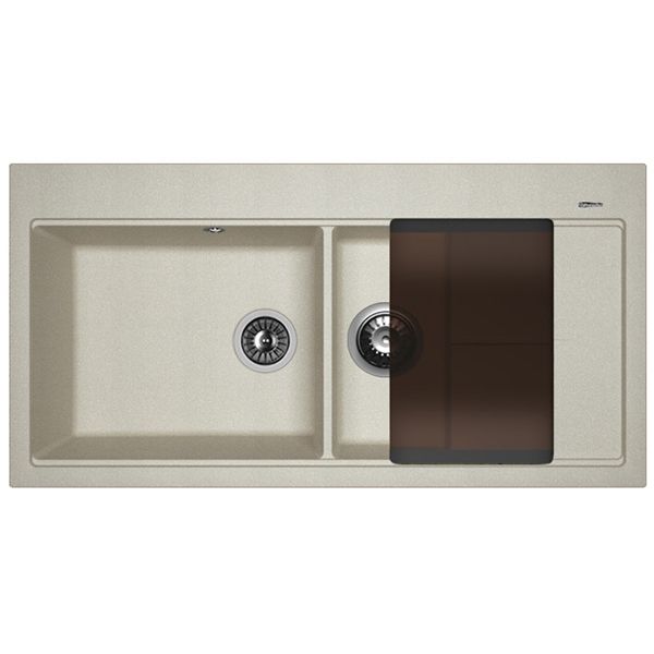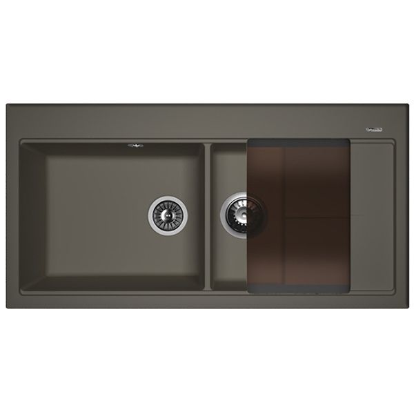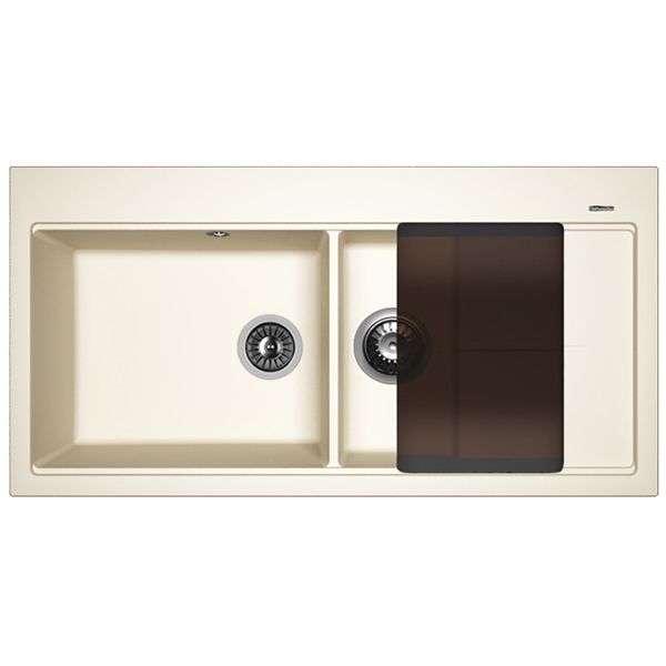 В комплекте поставки: кухонная мойка, стеклянная разделочная доска, отводная арматура с выпусками диаметром 90 мм и переливом, комплект крепежей.