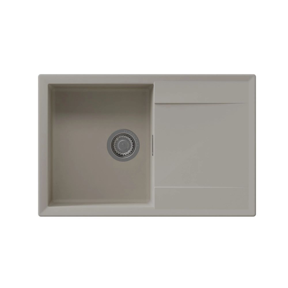 Прямоугольная мойка с большой чашей для кухонного шкафа 50 см. Материал — кварцевый композит. Предусмотрены доп. отверстия для установки аксессуаров. Мойка реверсивная.
