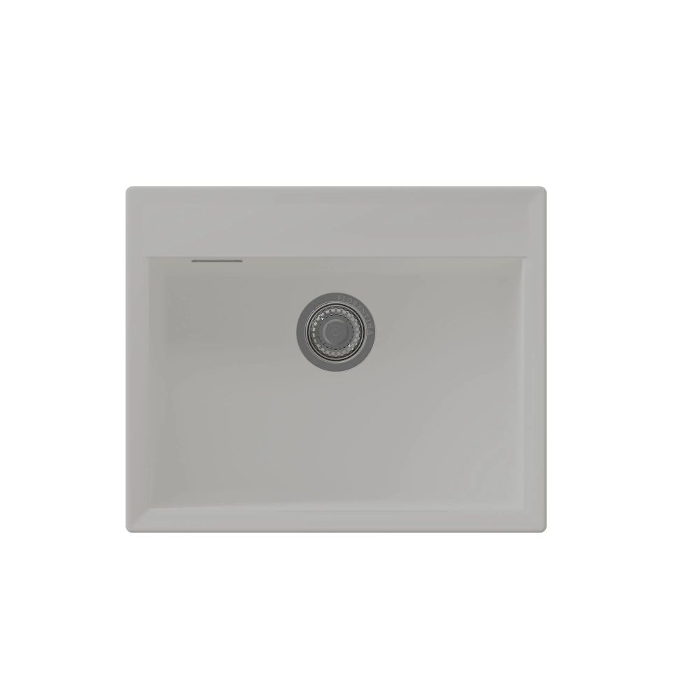 Прямоугольная мойка с большой чашей для кухонного шкафа 60 см. Материал — кварцевый композит. Предусмотрены доп. отверстия для установки аксессуаров.