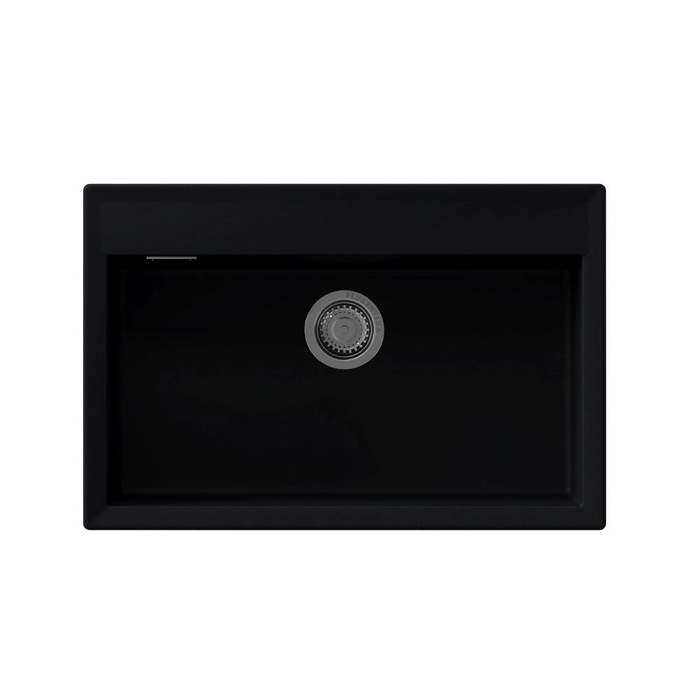 Прямоугольная мойка с большой чашей для кухонного шкафа 80 см. Материал — кварцевый композит. Предусмотрены доп. отверстия для установки аксессуаров.