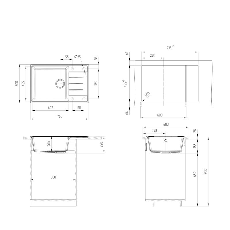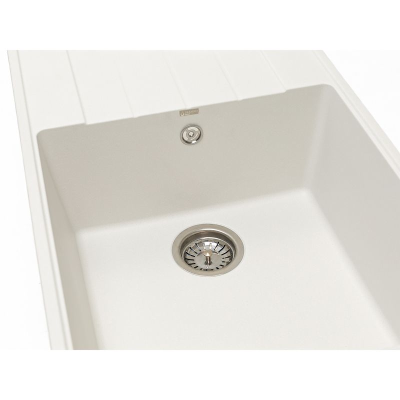 GRANDEX AQUA – это не только имя, но и качество, которое добавит новый уровень комфорта в Вашу жизнь. Материал мойки содержит минимум 80% натурального кварца, который обеспечивает высочайшую прочность и надежность, а также экологичность. Специальные гиброфобные добавки делаю материал не впитывающим и дополнительно защищают мойку от пятен и грязи. Мойка не боится кипятка и выдерживает температуру больше 150 градусов. Строгие линии и минимальные радиусы делают мойку эстетически привлекательной и премиальной.