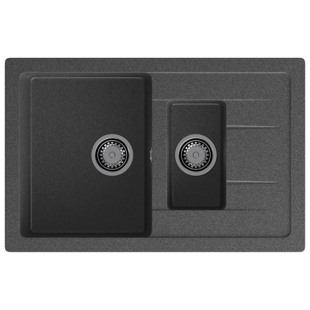 Кухонная мойка GranFest QUADRO 775KL, графит. Для кухонного шкафа 60 см. Материал — искусственный мрамор. Производство: Россия. Гарантийный срок: 5 лет.