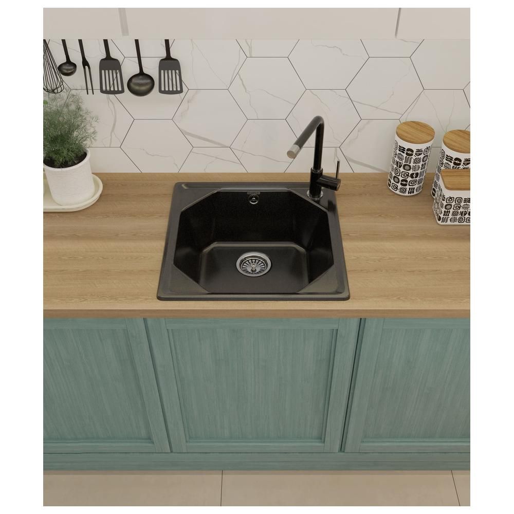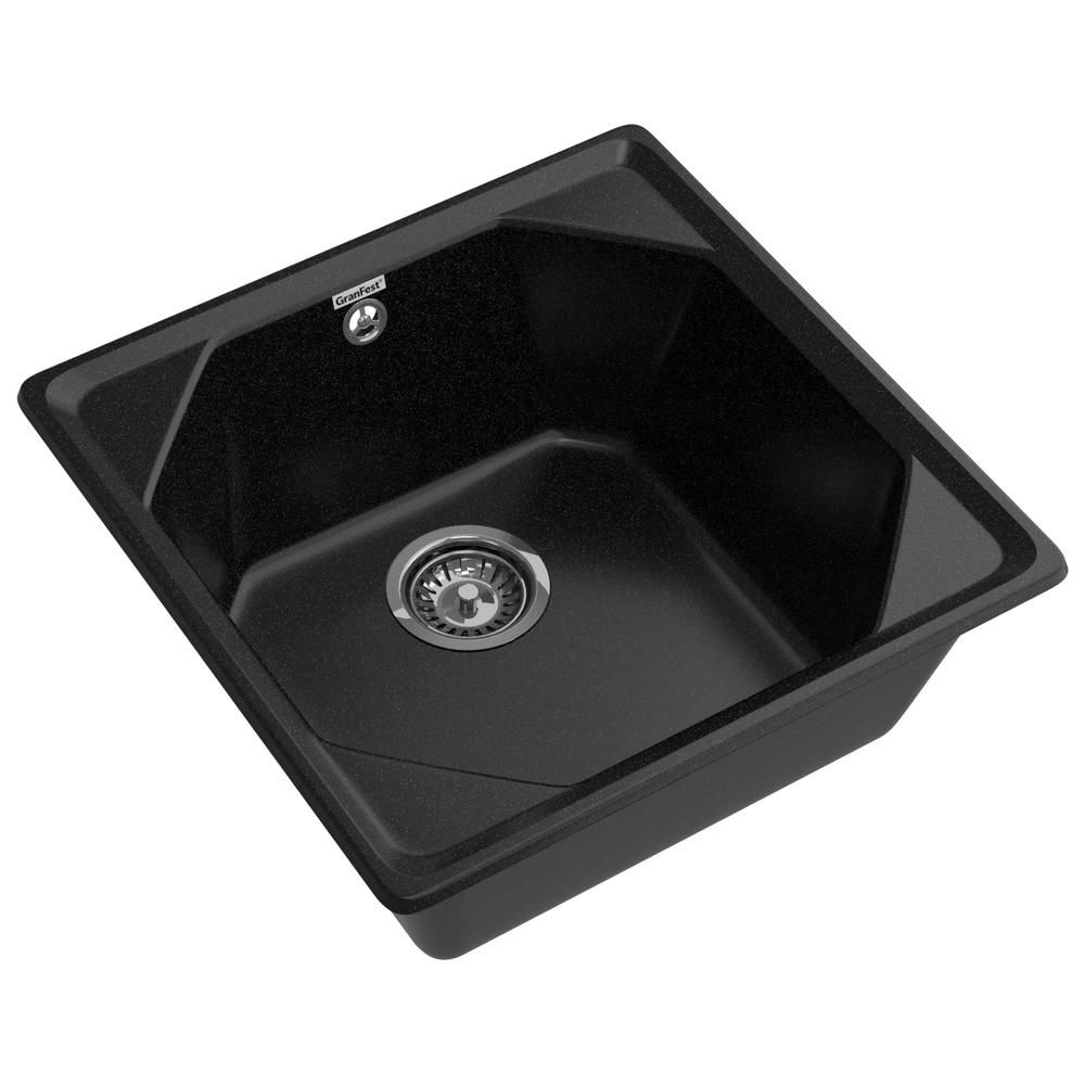 Кухонная мойка GranFest UNIQUE 500, черный. Для кухонного шкафа 50 см. Материал — искусственный мрамор. Производство: Россия. Гарантийный срок: 5 лет.