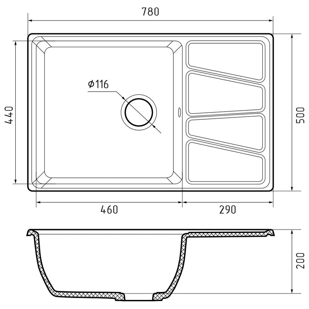 Кухонная мойка GranFest VERTEX 780L, иней. Для кухонного шкафа 60 см. Материал — искусственный мрамор. Производство: Россия. Гарантийный срок: 5 лет.