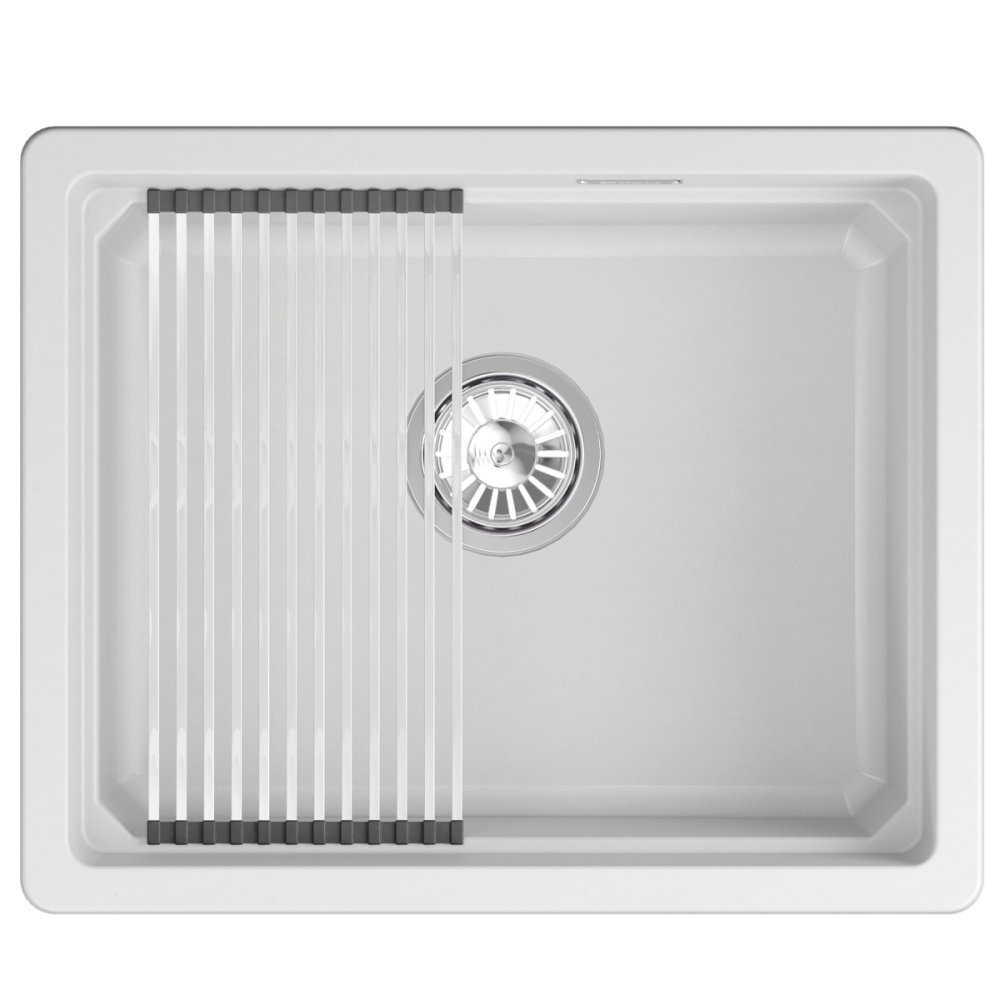 Мойка российского производителя Granula. Односекционная кухонная мойка прямоугольной формы 550х450 мм для установки под столешницу в шкаф 600мм. Представляет собой инновационный комплекс с удобной площадкой внутри чаши для установки ролл-мата или разделочной доски. Выполнена из кварцевого композитного материала высокой плотности и гигроскопичности, что обеспечивает не менее 20 лет надежной эксплуатации. Ролл-мат и дозатор из нержавеющей стали идут в комплекте.