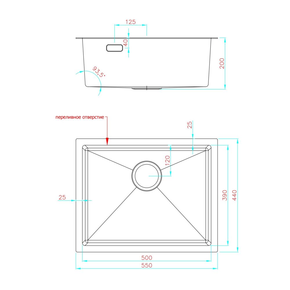 Диаметр слива, см