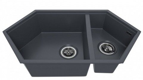 Специальная модель для углового размещения мойки в гарнитуре. Большая и средняя по объему чаши позволяют варьировать их использование.