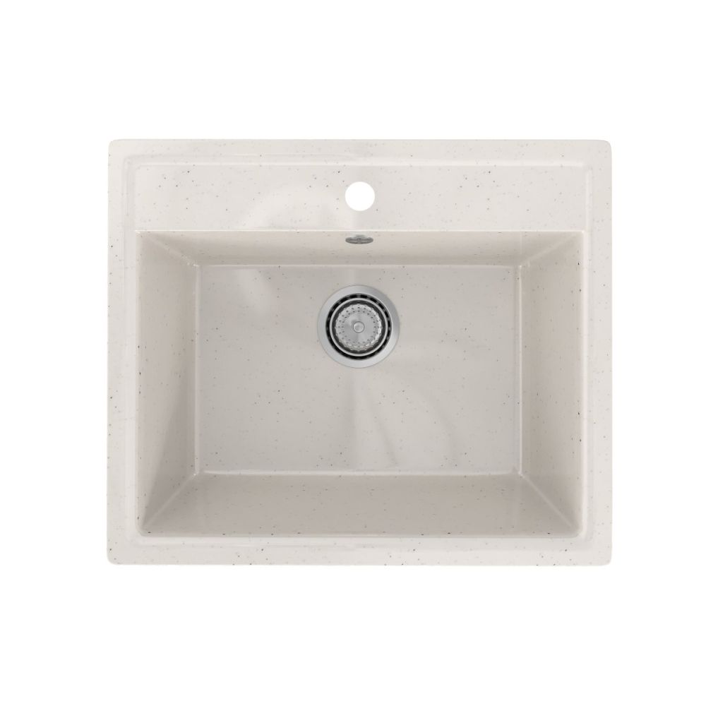 Мойка изготовлена из искусственного камня — композитного материала на основе натурального мрамора и связующих смол. Благодаря этому материалу снижается шум от падающей струи воды.