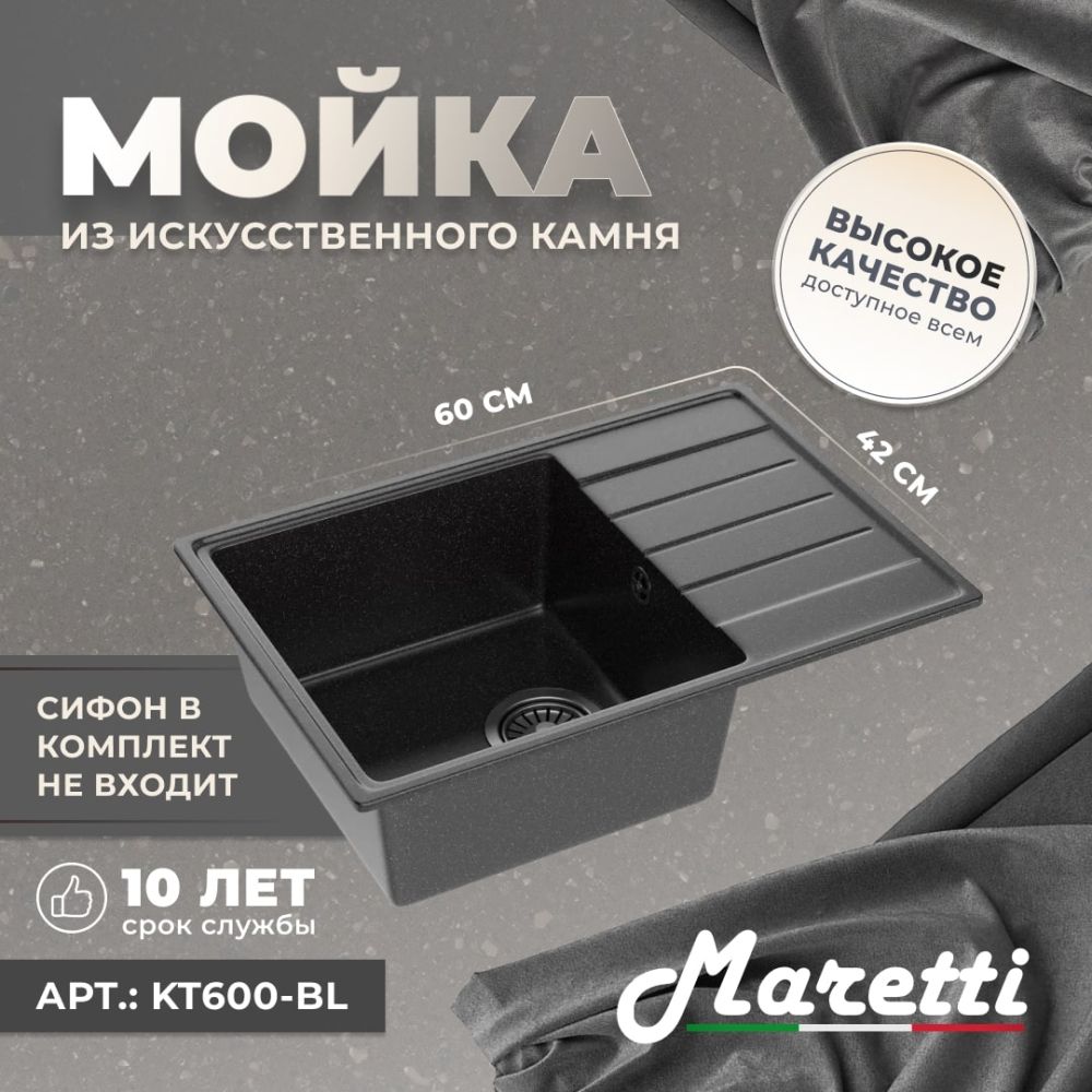 Односекционная реверсивная мойка Maretti Kitchen 600 с плоским крылом идеально подойдёт для небольшой кухни. Крыло можно расположить как справа, так и слева. Мойка не имеет готовых отверстий под смеситель.