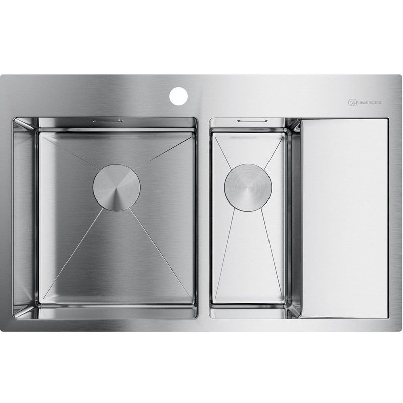 Кухонная мойка Omoikiri Akisame 78-2 L IN 4973062 с дополнительной чашей, крылом и переливом. Цвет: нержавеющая сталь.