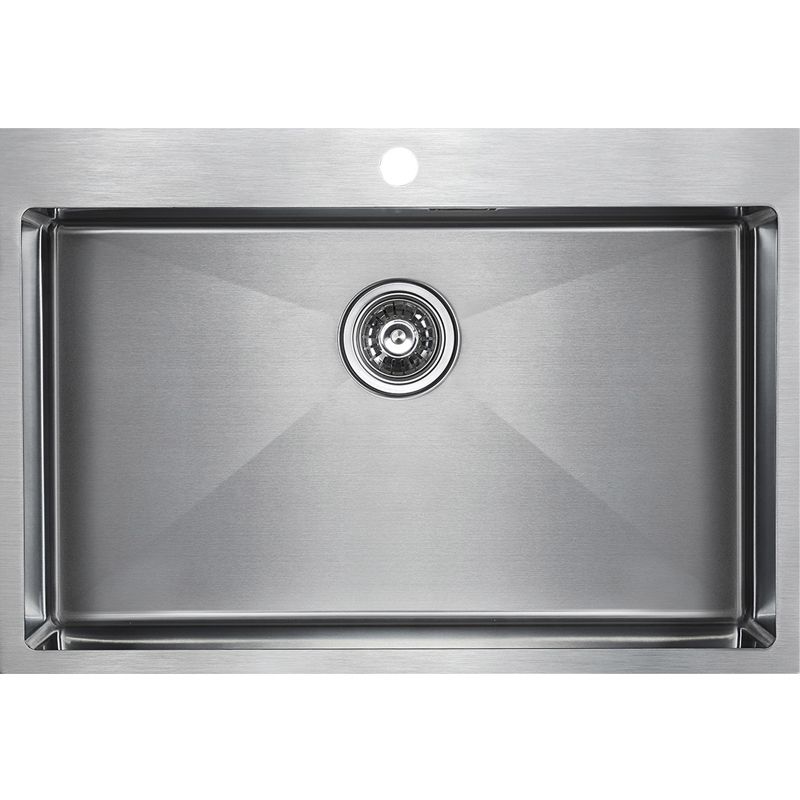 Кухонная мойка Paulmark Saar 75 PM807551-BS из нержавеющей стали с брашированной поверхностью. Снабжена вместительной чашей и широкой площадкой под смеситель. Имеет плоский кант.