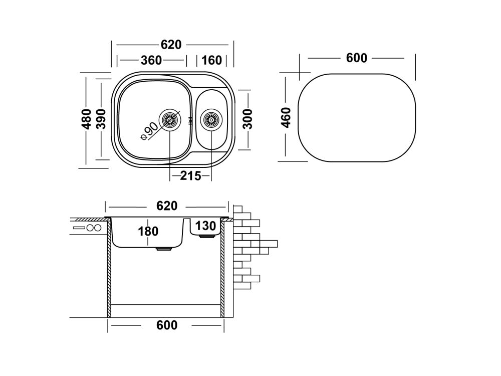 Модель врезного способа монтажа, имеет размеры 620х480 мм и предназначена для установки в тумбу от 60 см.