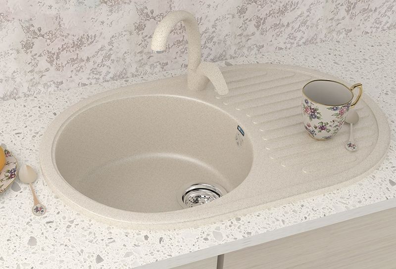 - Мойка изготовлена из искусственного мрамора (мраморная крошка - 80%, акриловая смола - 20%).