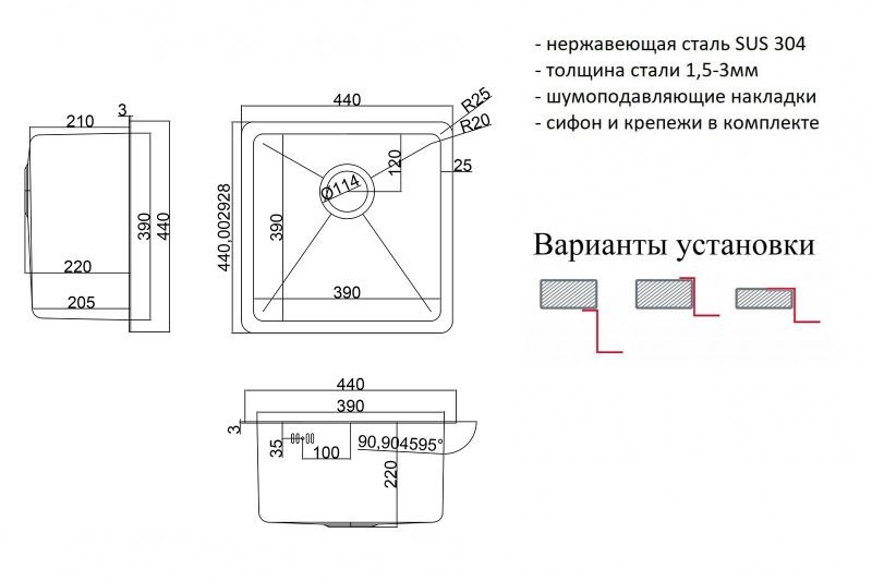 - Монтаж: Встраиваемая сверху, встраиваемая снизу, интегрированная (вровень со столешницей).