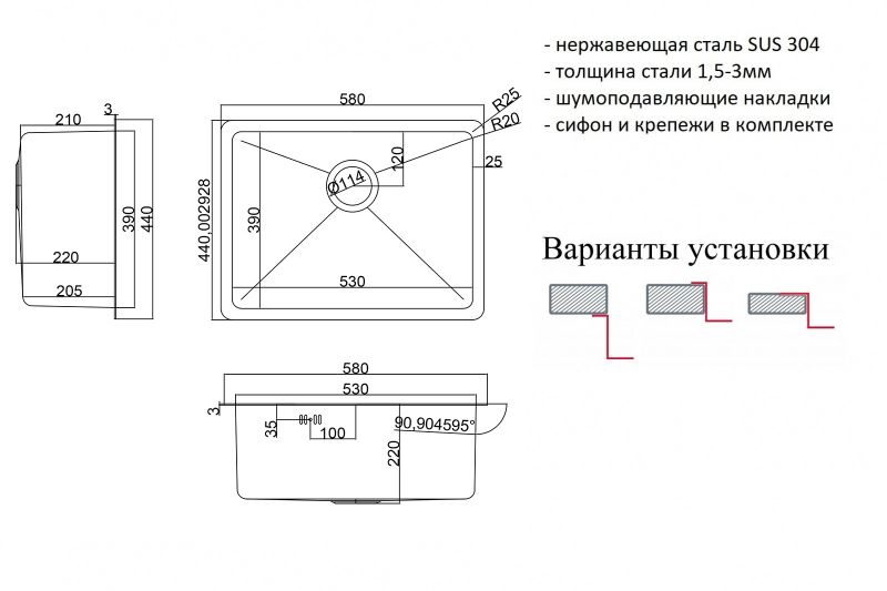- Монтаж: Встраиваемая сверху, встраиваемая снизу, интегрированная (вровень со столешницей).