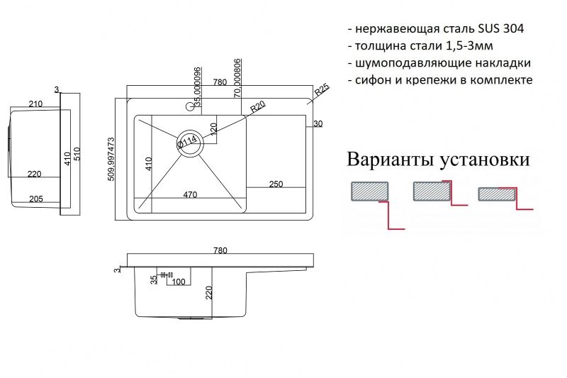 - Монтаж: Встраиваемая сверху, встраиваемая снизу, интегрированная (вровень со столешницей).