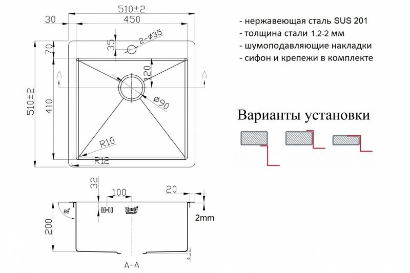 - Монтаж: Встраиваемая сверху, встраиваемая снизу, интегрированная (вровень со столешницей).