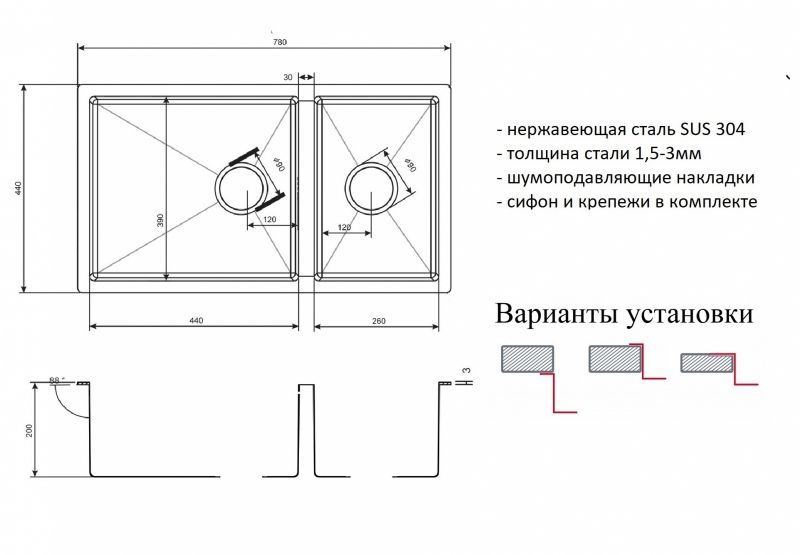 - Монтаж: Встраиваемая сверху, встраиваемая снизу, интегрированная (вровень со столешницей).