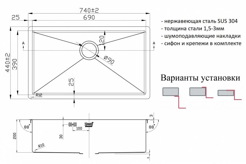 - Монтаж: Встраиваемая сверху, встраиваемая снизу, интегрированная (вровень со столешницей).