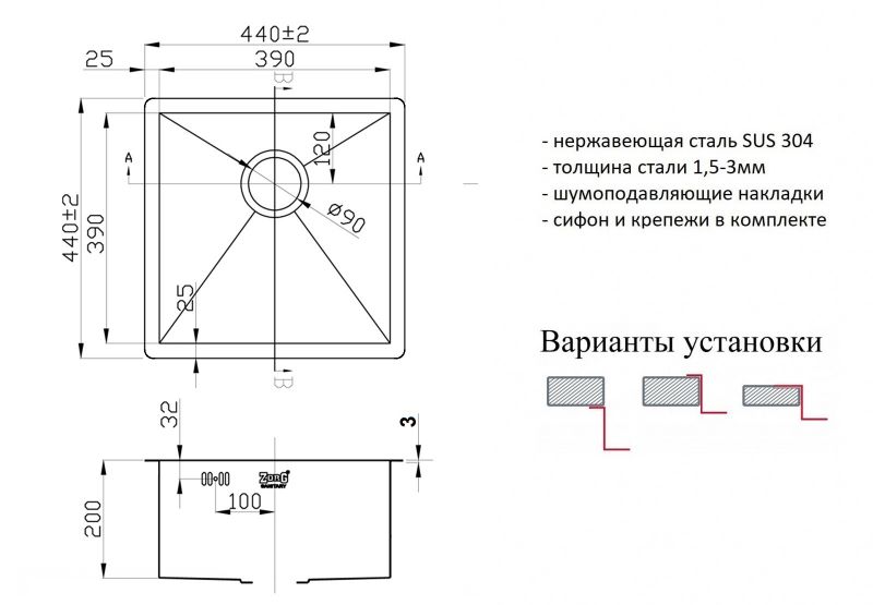- Монтаж: Встраиваемая сверху, встраиваемая снизу, интегрированная (вровень со столешницей).