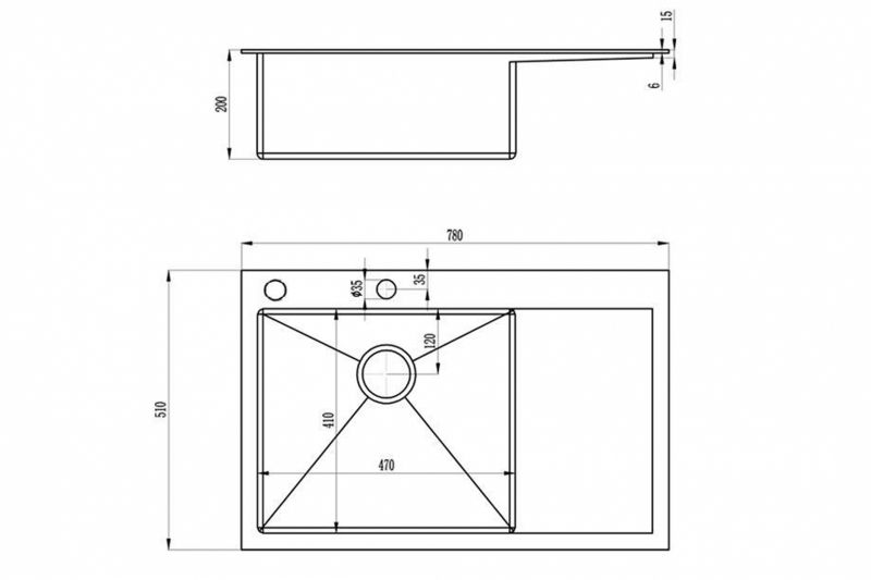 - Диаметр сливного отверстия: 3 1/2 дюйма ( 90 мм).