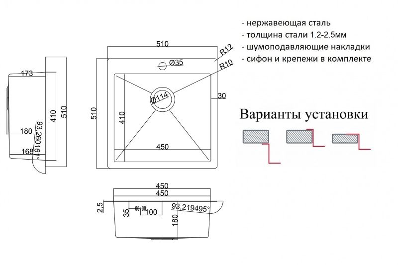 - Монтаж: Встраиваемая сверху, встраиваемая снизу, интегрированная (вровень со столешницей).