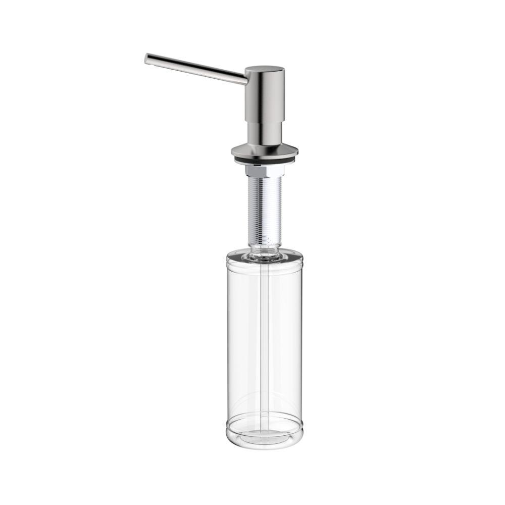 Дозатор встраиваемый для жидкого моющего средства Raglo R720.01.05 - отличный аксессуар для вашей кухни. Устанавливается в отверстие в столешнице Ф25 - 35 мм и фиксируется при помощи прижимной гайки на резьбе, рядом со смесителем для кухни. А со смесителями R80.62.05, R81.64.05, S70.61.05 составит прекрасный дуэт. Потому что выполнены они в одном цвете - сатин. Толщина столешницы возможна от 1 до 5 см. Головка дозатора из латуни, колба объемом 350 мл из прочного пластика. Нажатие мягкое, носик дозатора поворачивается на 360 градусов. Дозатор легко монтируется на столешницу и весьма удобно и просто происходит пополнение моющего средства. Дозатор превосходно организует пространство у мойки и несомненно украсит ее.