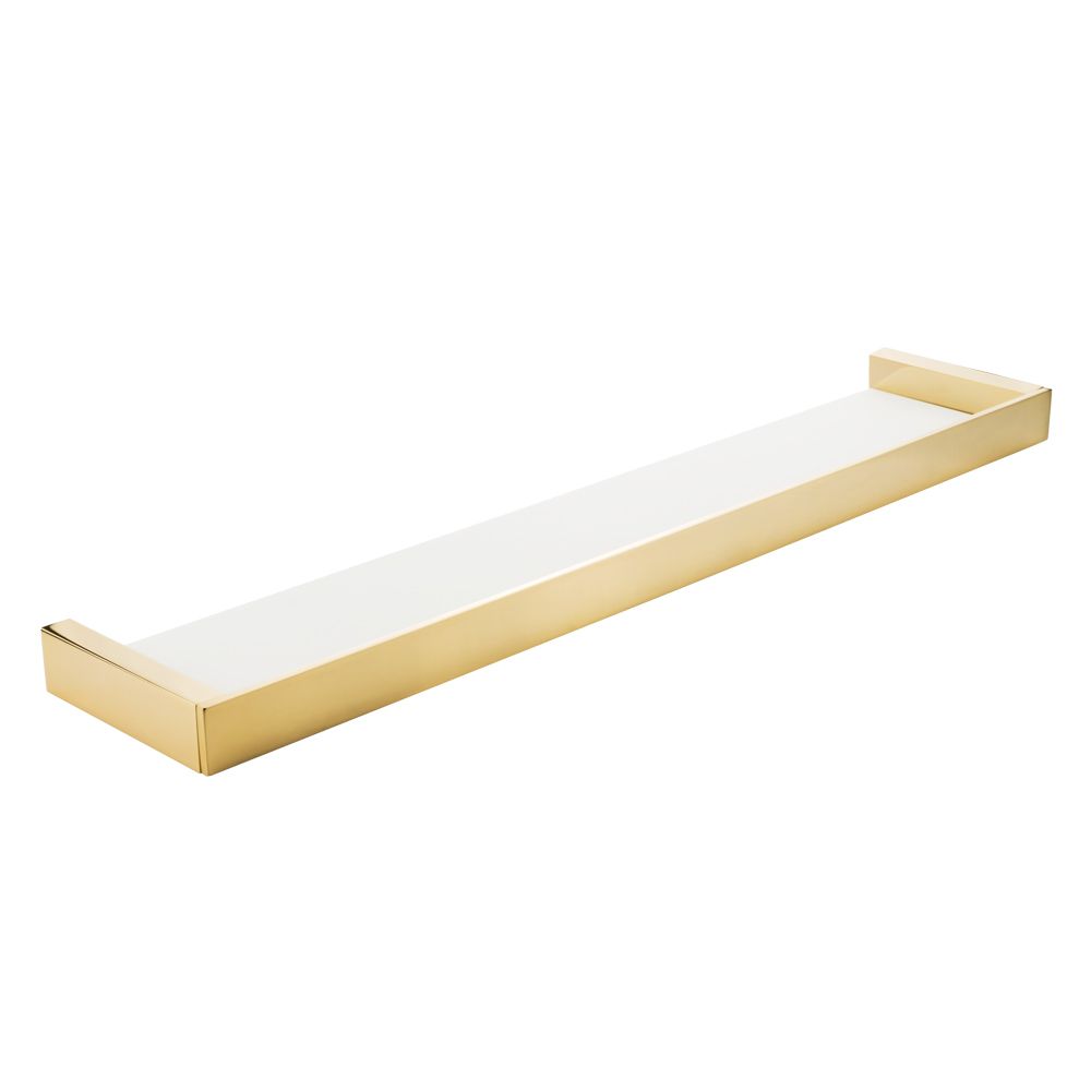 Полка серии Kvant бренда MIGLIORE длиной 58 см — это функциональный аксессуар для ванной комнаты. Полка вешается над раковиной. На ней вы сможете разместить все необходимые вам косметические средства, которые будут всегда у вас под рукой. Стекло легко чистится тряпочкой и/или средством для чистки стекол. Изделие выполнено из высококачественной латуни и имеет гальваническое покрытие золотом 24 карата.
