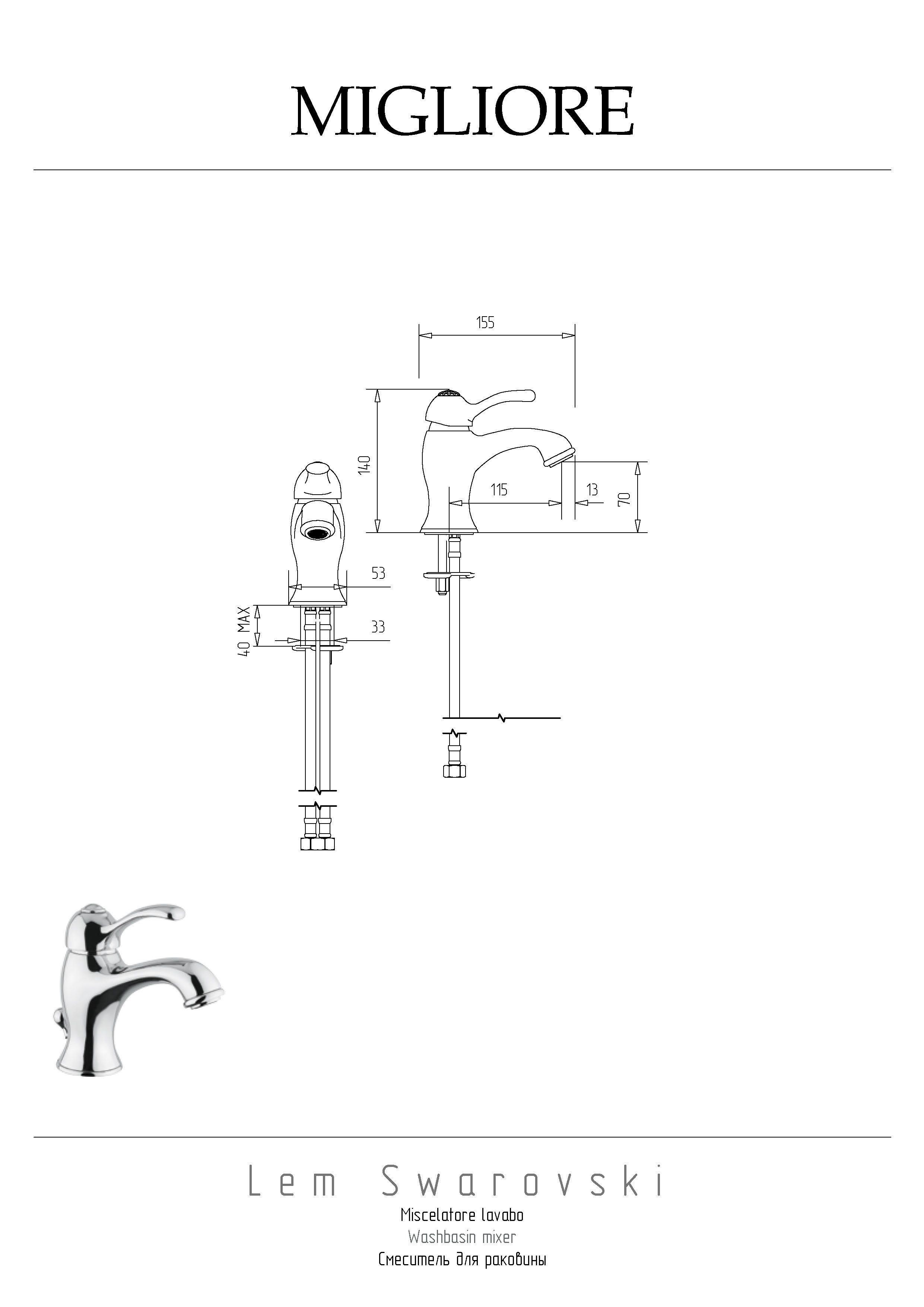 Рекомендуется использовать чистящее средство бренда MIGLIORE для смесителей и аксессуаров с хромированным покрытием.