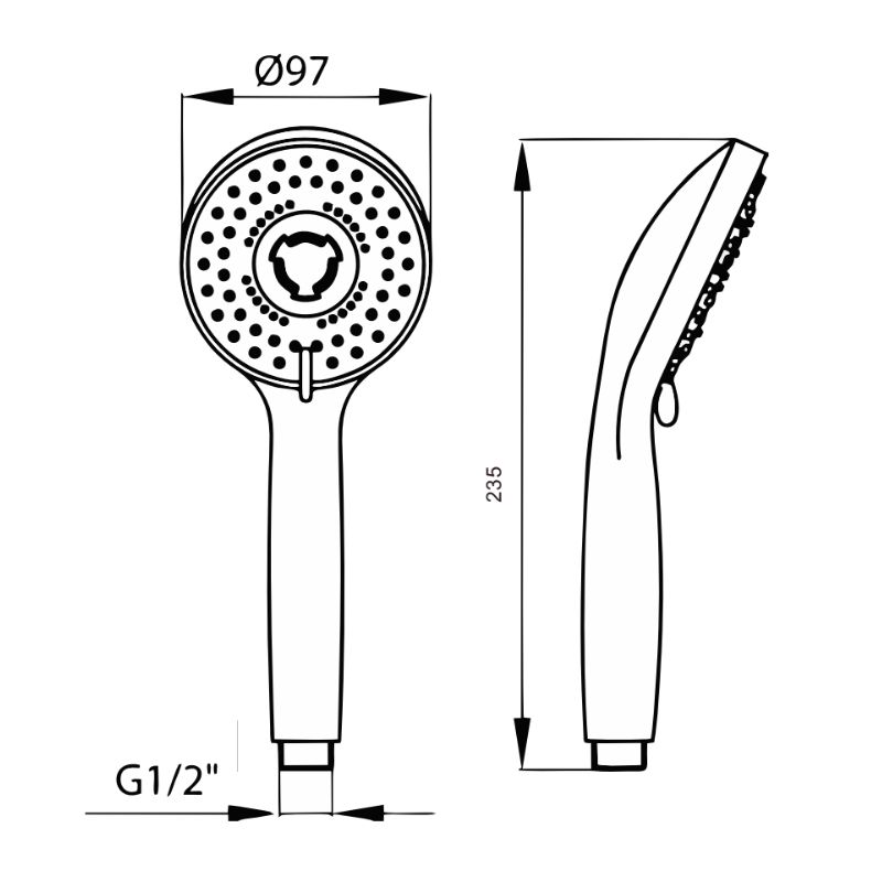 Душевая лейка D-Lin совместима со всеми душевыми шлангами. Стандарт подключения 1/2"