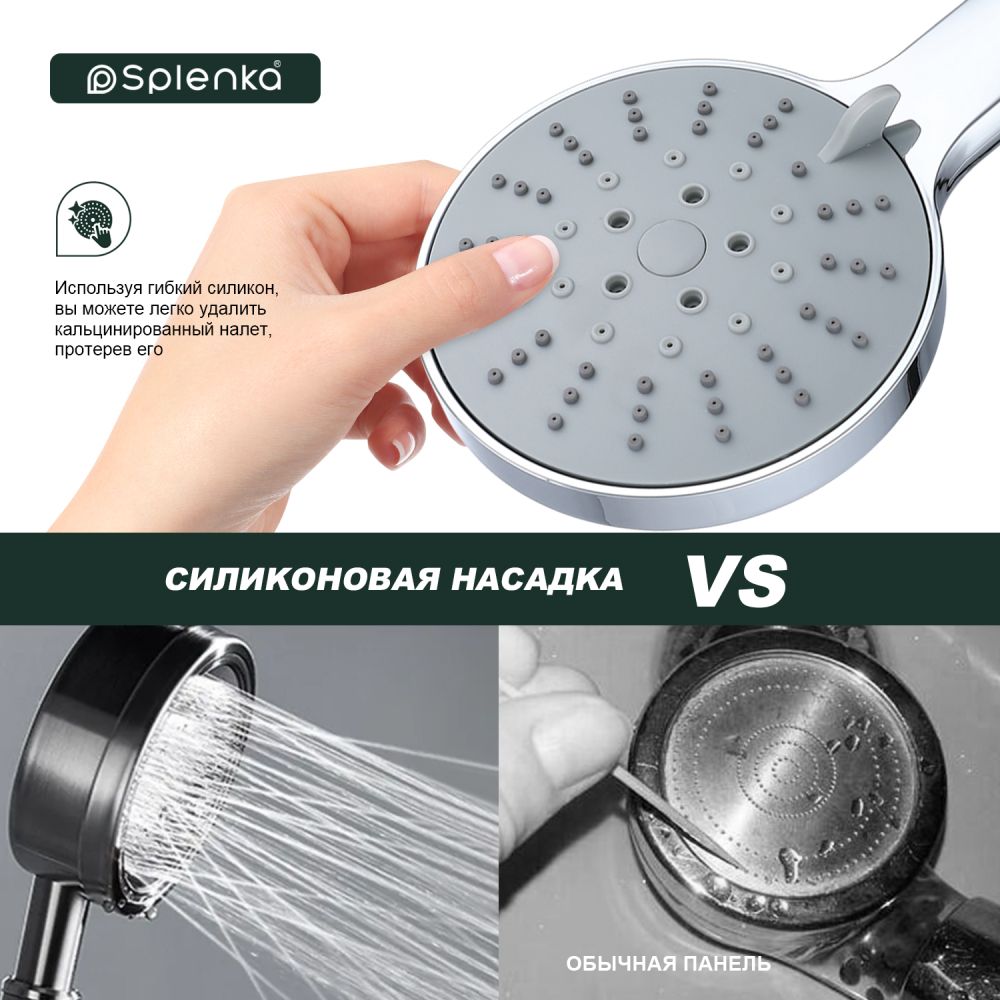 нтерьер создают детали. Именно по этой причине важно выбрать качественную и современную лейку для душевой кабины по разумной цене. Душевая лейка SPLENKA имеет хорошо выполненный современный дизайн, который сочетает в себе техническое совершенство, современные модные тенденции и грациозную классику. Лейка для душа полностью адаптирована для эксплуатации в условиях повышенной влажности окружающей среды, не боится интенсивных перепадов температур. 5 режимов работы душевой лейки, исполнение в цвете хром. Сантехника с брендом высокого класса отличается модным и стильным дизайном, гарантированно высоким качеством и при этом - разумной ценой.