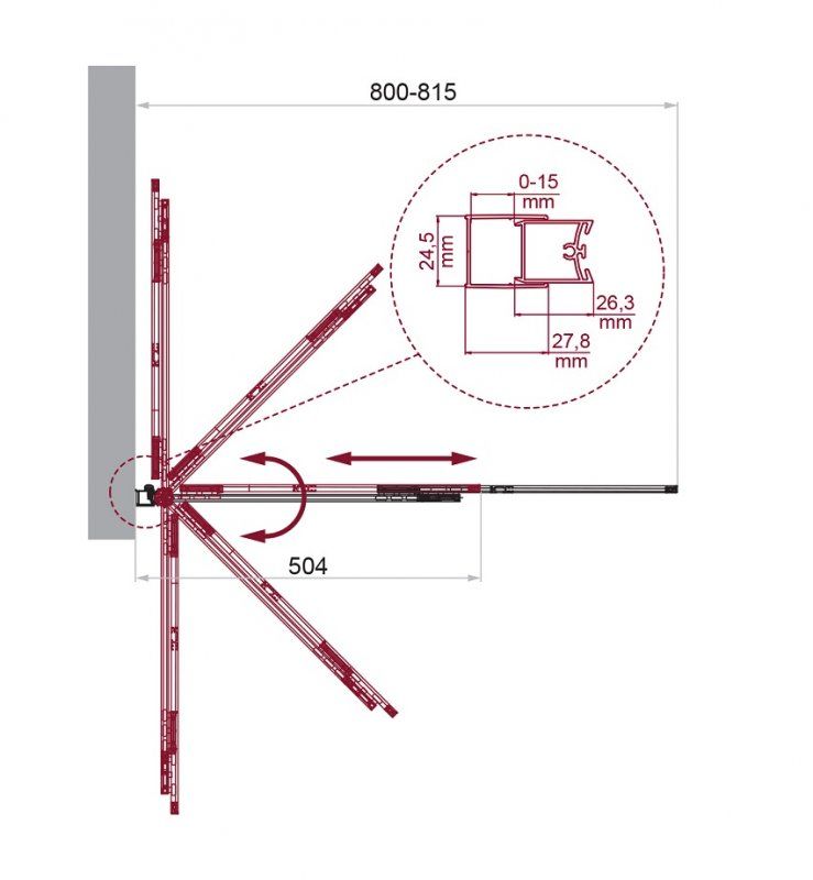 Конструкция двери: поворотная цилиндрическая петля и выдвижная створка