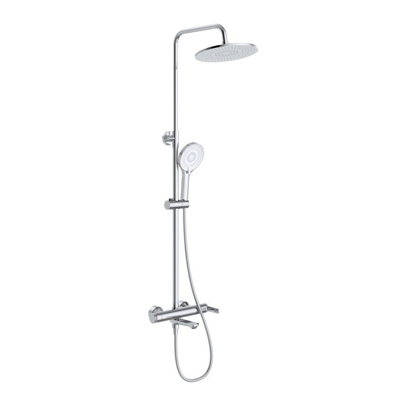 Оснащение: эксцентрики, переключатель потоков, душевой шланг ПВХ длиной 150 см, ручной душ 3-х режимный, верхний душ, смеситель с поворотным изливом
