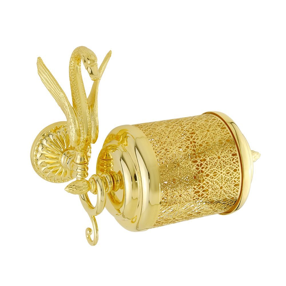 В коллекции LUXOR бренда MIGLIORE представлен уникальный бумагодержатель с ажурным цилиндром - чтобы поместить туалетную бумагу внутрь, необходимо снять боковую крышку и положить бумагу в цилиндр, пропустив свободный край рулона в прорезь в цилиндре. Данный бумагодержатель будет выглядеть роскошно и эстетично в вашей ванной комнате, так как бумага полностью скрыта от глаз и защищена от пыли и влаги. Изделие выполнено из высококачественной латуни и имеет гальваническое покрытие золотом 24 карата. Внимание: золотое покрытие очень деликатное и для ухода рекомендуется использовать чистящее средство бренда MIGLIORE для смесителей и аксессуаров с деликатными покрытиями бронза, золото, медь и протирать мягкой ветошью.