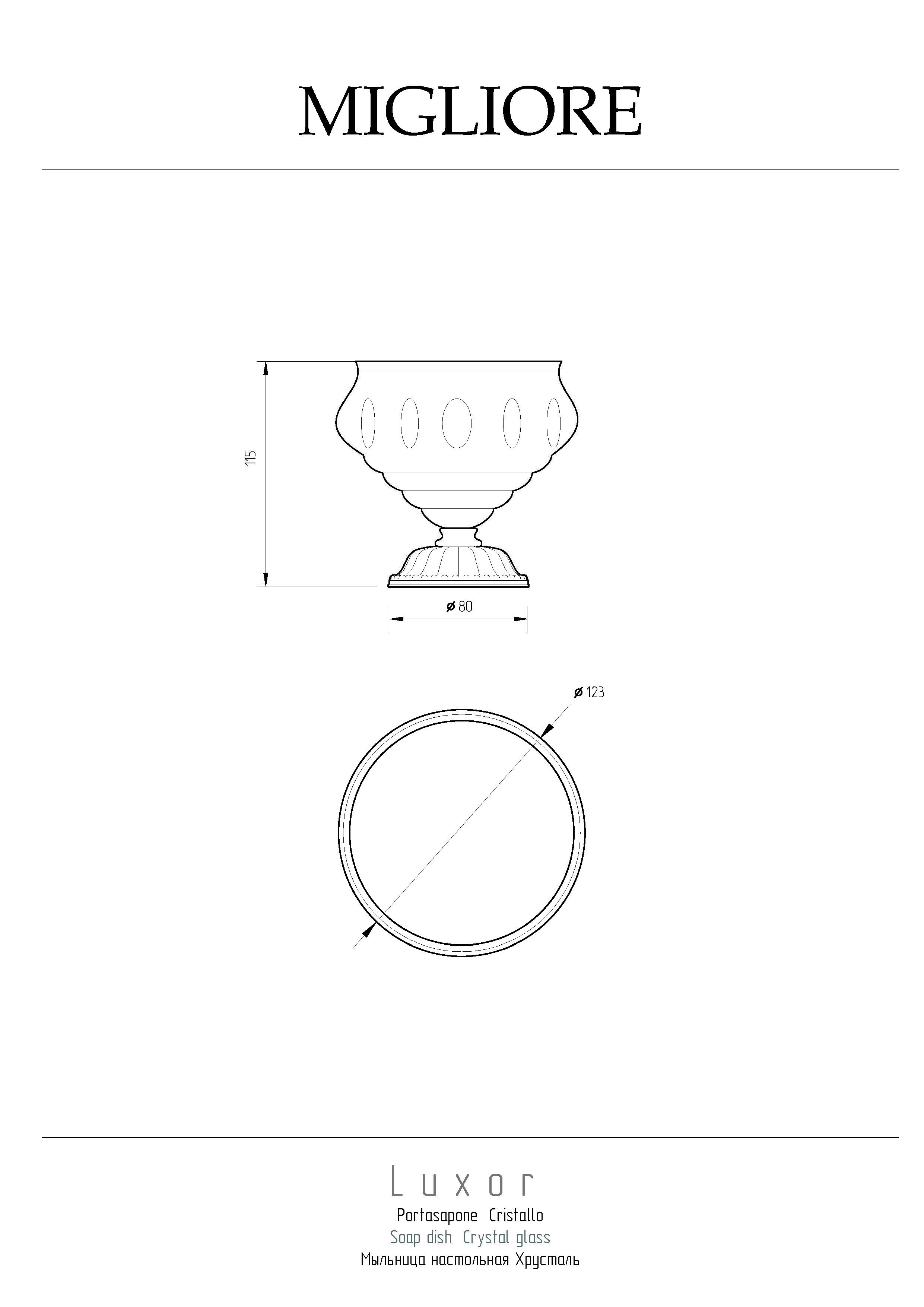 Настольная мыльница коллекции LUXOR бренда MIGLIORE выполнена из высококачественного хрусталя, декорированного золотом 24 кт. При необходимости хрустальную мыльницу можно вынуть из посадочного места, чтобы помыть. Изделие выполнено из высококачественной латуни и имеет гальваническое покрытие золотом 24 карата. Внимание: золотое покрытие очень деликатное и для ухода рекомендуется использовать чистящее средство бренда MIGLIORE для смесителей и аксессуаров с деликатными покрытиями бронза, золото, медь и протирать мягкой ветошью.