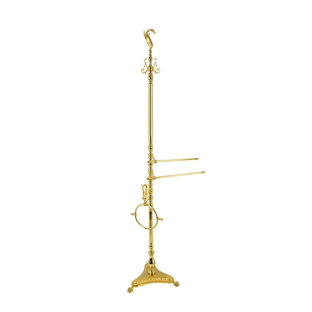 Стойка высокая коллекции LUXOR бренда MIGLIORE — это красивый и многофункциональный аксессуар для ванной комнаты. В верхней части стойки расположены крючки для халатов и больших полотенец, в средней части — два полотенцедержателя и фигурное кольцо для полотенец небольшого размера. Изделие выполнено из высококачественной латуни и имеет гальваническое покрытие золотом 24 карата. Внимание: золотое покрытие очень деликатное и для ухода рекомендуется использовать чистящее средство бренда MIGLIORE для смесителей и аксессуаров с деликатными покрытиями бронза, золото, медь и протирать мягкой ветошью.
